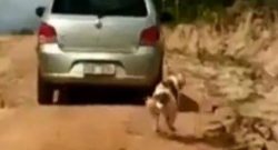 Cão é arrastado por carro com corda no pescoço. Motorista é identificado