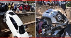 Corolla cai em canal da feira após ser atingido por caminhonete