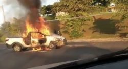 Após bater, carro pega fogo na avenida Paralela