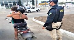 Avó não habilitada é flagrada transportando neta de 2 anos, amarrada na cintura, em motoneta na BR 367