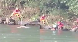 Filho dar garrafa em mãe e se joga no Rio