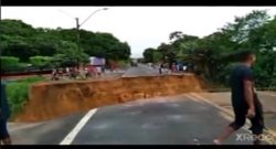 Pista rompe ao meio após fortes chuvas e alagamentos no Sul da Bahia