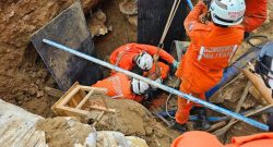Operário fica preso em tubulação de rede esgoto em Saramandaia; VEJA VÍDEO