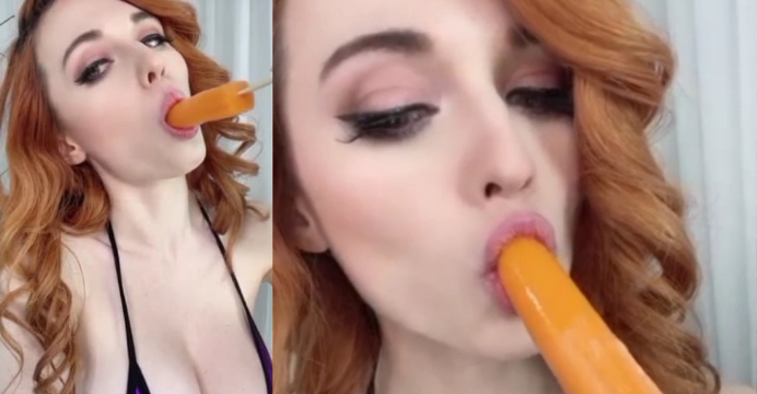 Amouranth de biquíni rebolando e chupando picolé
