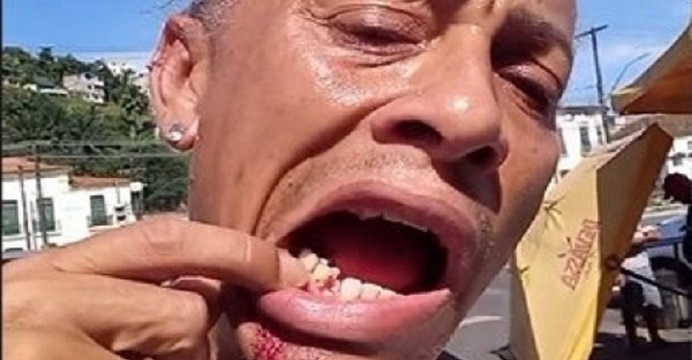 “Estou aqui na Feira de São Joaquim. Eu vim aqui buscar minhas compras, para entrar aqui [na feira] de carro porque as compras estavam pesadas. Um cara, que diz que é segurança daqui, me deu uma coronhada e quebrou meus dentes”, contou o ator.