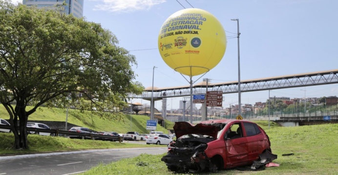 Misturar álcool com direção pode estragar seu Carnaval. É esse o alerta que a Superintendência de Trânsito de Salvador (Transalvador) faz na campanha de conscientização neste ano. Durante a folia momesca, quem transitar pelas grandes avenidas de Salvador vai se deparar com peças da campanha, como megapainéis, balões publicitários e até mesmo carros destruídos para sensibilizar os foliões sobre os perigos de beber e dirigir.