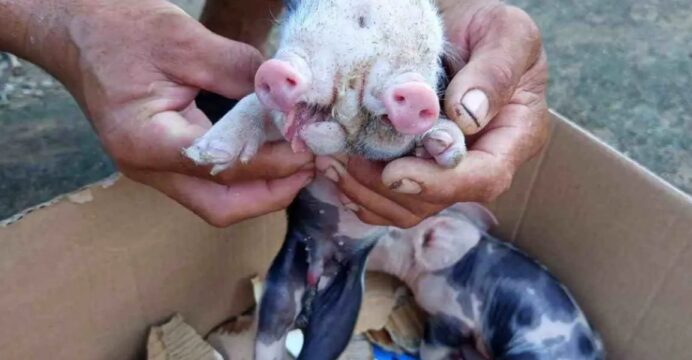 Segundo Raildo, o filhote não conseguiu se alimentar devido à má formação, o que compromete suas chances de sobrevivência. “Eu tentei segurar e ajudar, mas, na hora de sugar a teta da porca, o outro lado [da boca] não permite que sugue”, relatou ao portal Acorda Cidade.