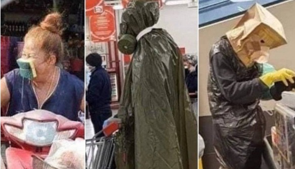 Clientes de supermercados improvisam proteções bizarras durante a pandemia de coronavírus
