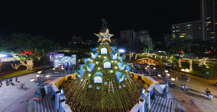 A decoração natalina conta com cerca de sete milhões de lâmpadas sustentáveis de LED e reúne opções de lazer para o público e uma estrutura com catedral composta por vitrais, Casa do Papai Noel, presépio gigante e vila natalina.