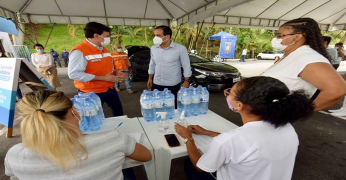 O Ação Salvador Solidária promove um drive-thru de arrecadação de água mineral, que será destinada aos cidadãos atingidos pelas enchentes que ocorrem no sul e extremo sul da Bahia. A abertura da iniciativa foi acompanhada pelo prefeito Bruno Reis, na manhã desta quarta-feira (29), na sede da Defesa Civil de Salvador (Codesal), na Avenida Mário Leal Ferreira (Bonocô).