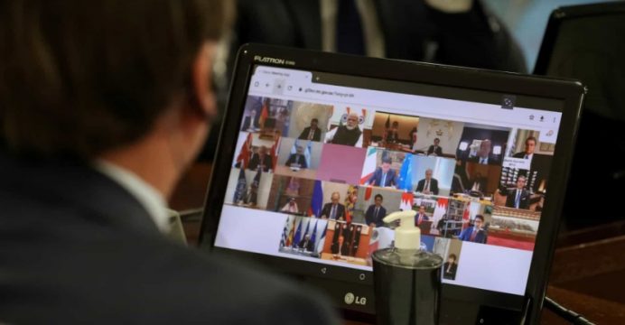 Após a videoconferência, foi divulgado um comunicado conjunto, que trata o coronavírus como uma “pandemia sem precedentes”.
