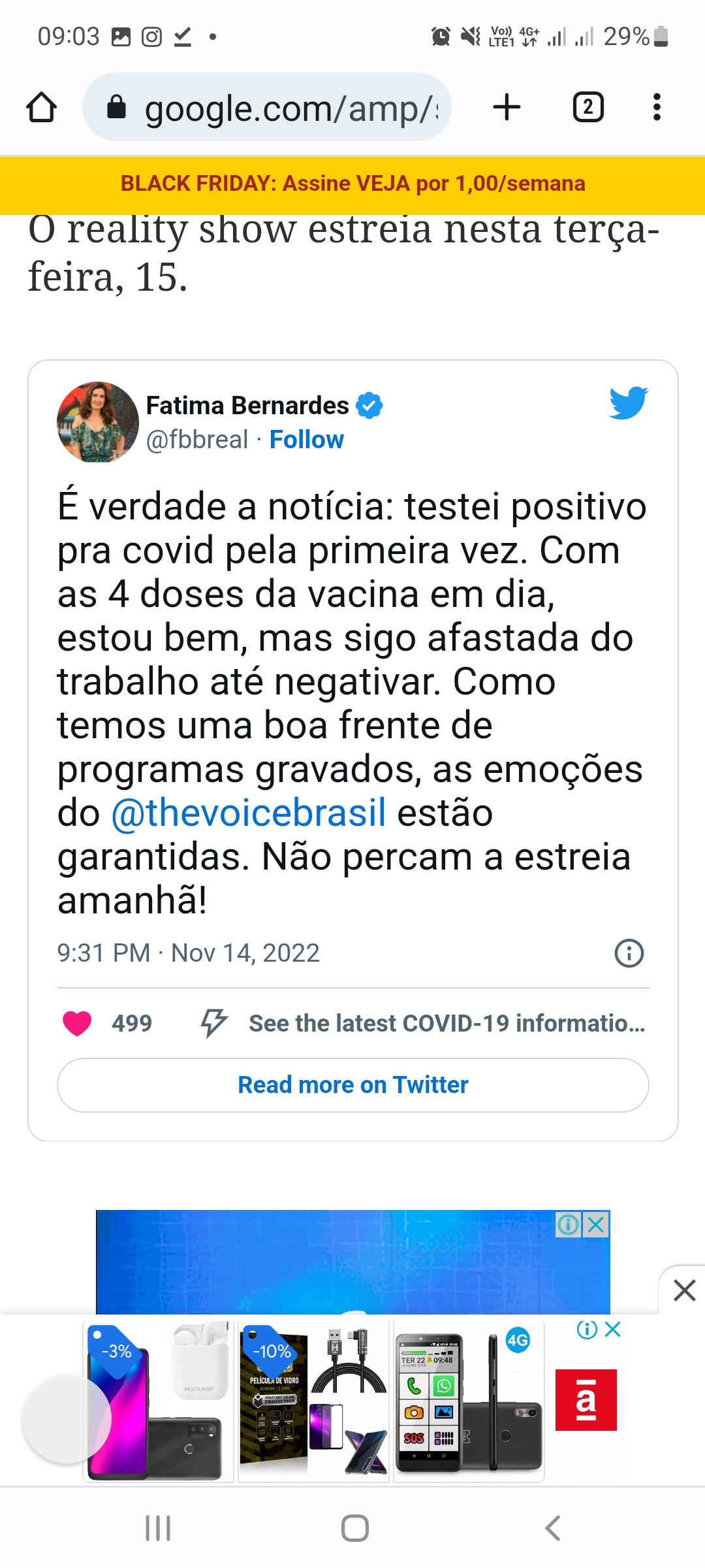 “Com as quatro doses da vacina em dia, estou bem, mas sigo afastada do trabalho até negativar. Como temos uma boa frente de programas gravados, as emoções do The Voice Brasil estão garantidas”, escreveu a jornalista. O reality show estreia nesta terça-feira, 15.