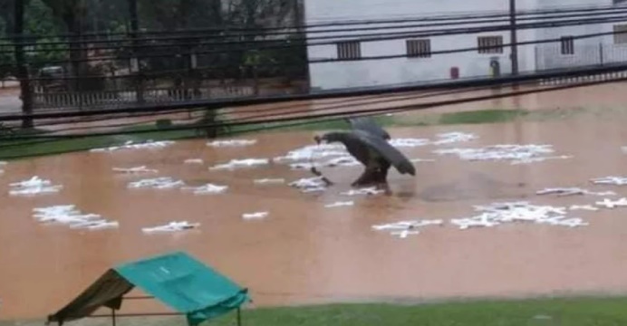 Imagem icônica: cruzes em homenagem às vítimas da tragédia de fevereiro boiam na Praça da Águia, no centro de