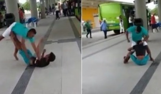 Dois homens saíram na porrada dentro de um terminal de integração na Zona Norte de Teresina nesta terça-feira (17/03).