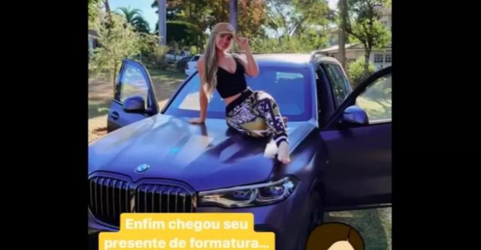 Hulk comprou para a amada uma BMW X7 Dark Shadow Edition. O carro de luxo é avaliado em mais de R$ 1 milhão. “Enfim chegou seu presente de formatura. Você merece amor”, postou atacante nas redes sociais. Na foto, ela aparece sentada em cima do carro.