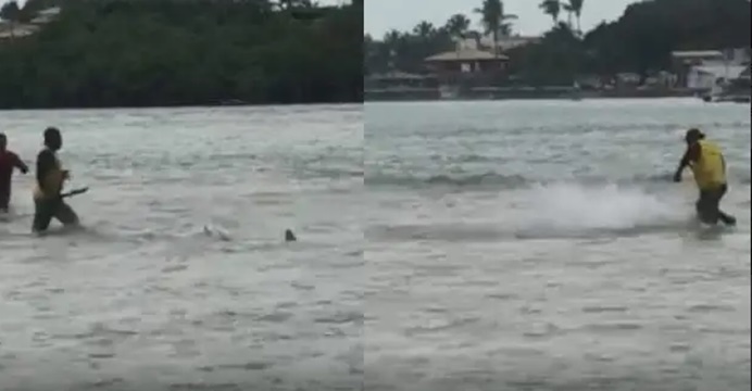Inacreditável! Banhista persegue tubarão com faca em Camaçari