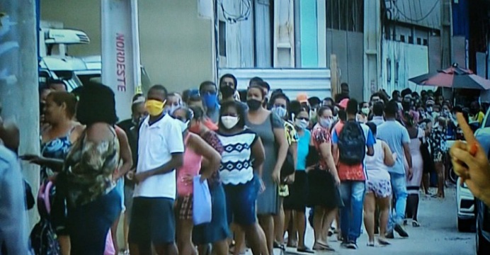 Em meio a pandemia do coronavírus (Covid-19), que já matou 8.165 pessoas em toda Bahia, a rede de supermercados Atakadão Atakarejo promoveu, na manhã desta quinta-feira (26), a inauguração de mais uma das suas franquias, gerando aglomeração na porta do estabelecimento. As pessoas compareceram à nova unidade, localizada na Av. San Martin, em Salvador, desde as 6h da manhã.