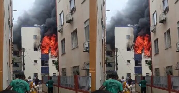 Um incêndio de grandes proporções atingiu um apartamento em um conjunto habitacional no bairro do Stiep, em Salvador, na manhã desta sexta-feira (27).