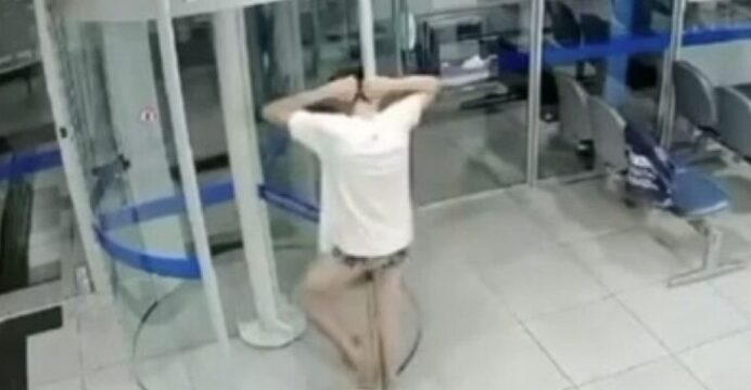 Ladrão atrapalhado invade agência bancária, fica preso em porta giratória e acaba detido