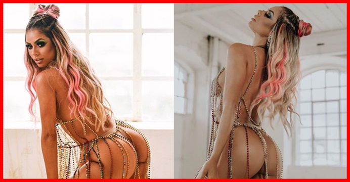 Lexa incendiou a web ao posar agachadinha com um look trabalhado de correntes, quase nua. O bumbum definido da musa ficou totalmente em evidência.