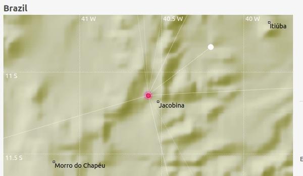 Um tremor de terra, de magnitude preliminar 2.7 na Escala de Richter, foi registrado na região do município de Jacobina, a 338 km de Salvador, na madrugada desta quarta-feira (3/2). Segundo o laboratório de sismológico da Universidade Federal do Rio Grande do Norte (UFRN), que monitora esses fenômenos no Nordeste, o fato ocorreu por volta das 2h07.