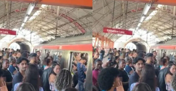 Vídeos compartilhados nas redes sociais mostram estações lotadas e vagões cheios, o que afetou a rotina de passageiros que tentavam chegar aos seus compromissos no horário.
