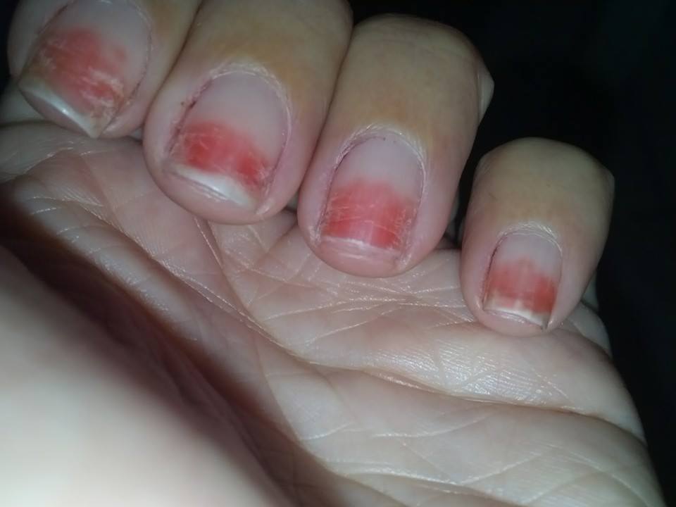Está circulando na internet uma foto tirada pela nutricionista carioca Rogéria Teixeira que mostra suas unhas completamente manchadas. Segundo ela, as marcas vermelhas apareceram após ela tentar tirar o esmalte degradê da Ludurana assinado por Bruna Marquezine. Em sua página do Facebook, a carioca escreveu um desabafo sobre como estava se sentindo “indignada” por ter suas unhas “destruídas, quebradiças e todas manchadas”