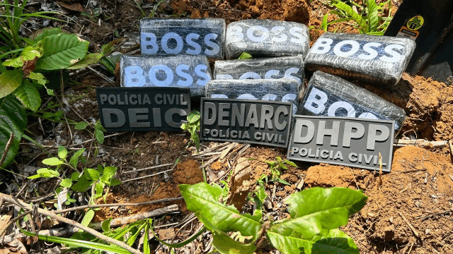 Durante a operação, os policiais encontraram sete tabletes de cocaína enterrados no terreno, confirmando que o local servia como depósito estratégico da facção.