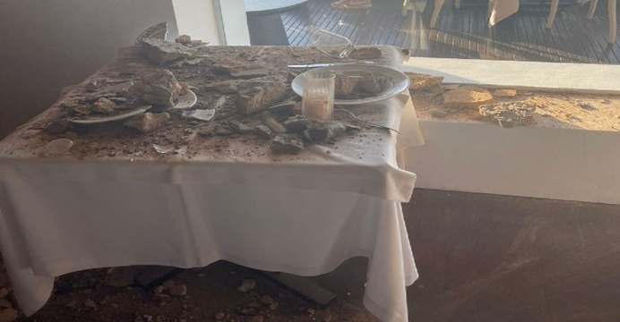 Parte de teto de restaurante AMADO cai sobre mesa com clientes