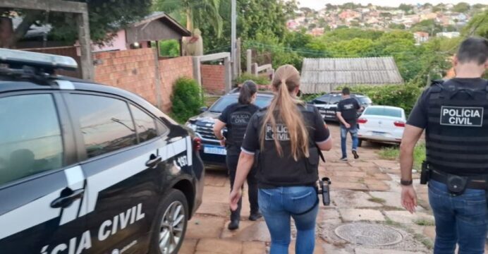 Imagens divulgadas pela corporação mostram o momento em que equipes policiais cumprem mandados em endereços ligados aos investigados. A ação tem como objetivo executar oito mandados de busca e apreensão e quatro mandados de prisão temporária.