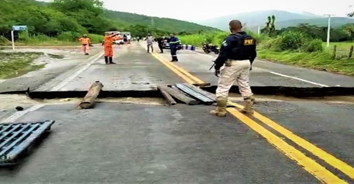 BR 330, Km 866, Ubatã – Interdição total por afundamento de pista. A força do rio danificou a rodovia, deixando um enorme buraco. Veículos de pequeno porte devem fazer desvio pela cidade.