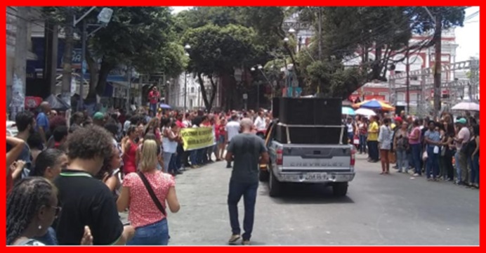 A APLB Sindicato dos Trabalhadores em educação da Bahia, realiza na manhã desta segunda (17), uma manifestação na região do Centro de Salvador, após uma assembleia geral da Rede Estadual no Ginásio dos Bancários.
