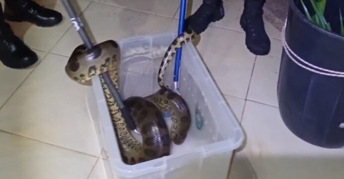 Sucuri de 2 metros é capturada em área residencial na RMS; veja