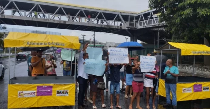 Trabalhadores ambulantes protestam na antiga Rodoviária e cobram medidas do governo da Bahia